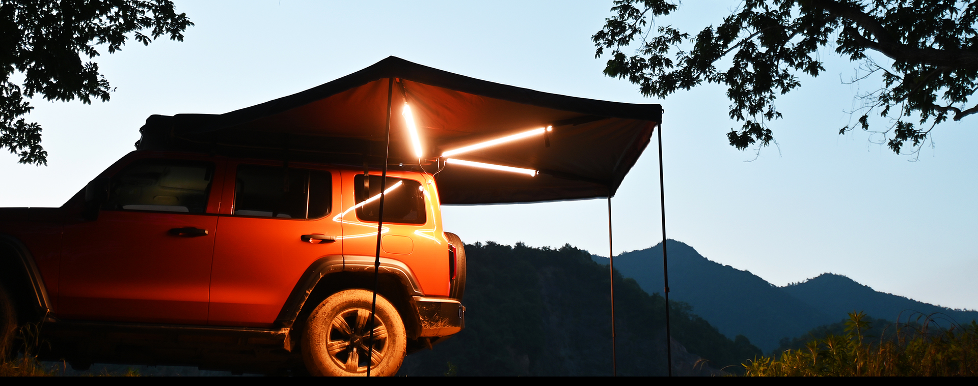 A roof top tent side awning gives you extra space on the ground to spread out and waterproof protection from the elements. It is 100% waterproof resistant, which means full rain protection for you. The color choices have black, gray and others as you like. Logo and brand customization is also accepted.