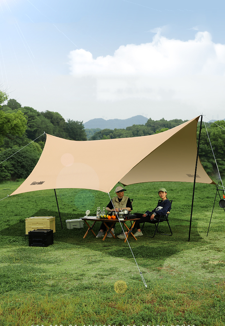 The 2.4m-heightened sky curtain pole supports a taller roof and creates a larger ceiling space. The large projection area exceeds 19 square meters and can easily accommodate 8-12 people, making activities easy and not stressful.
